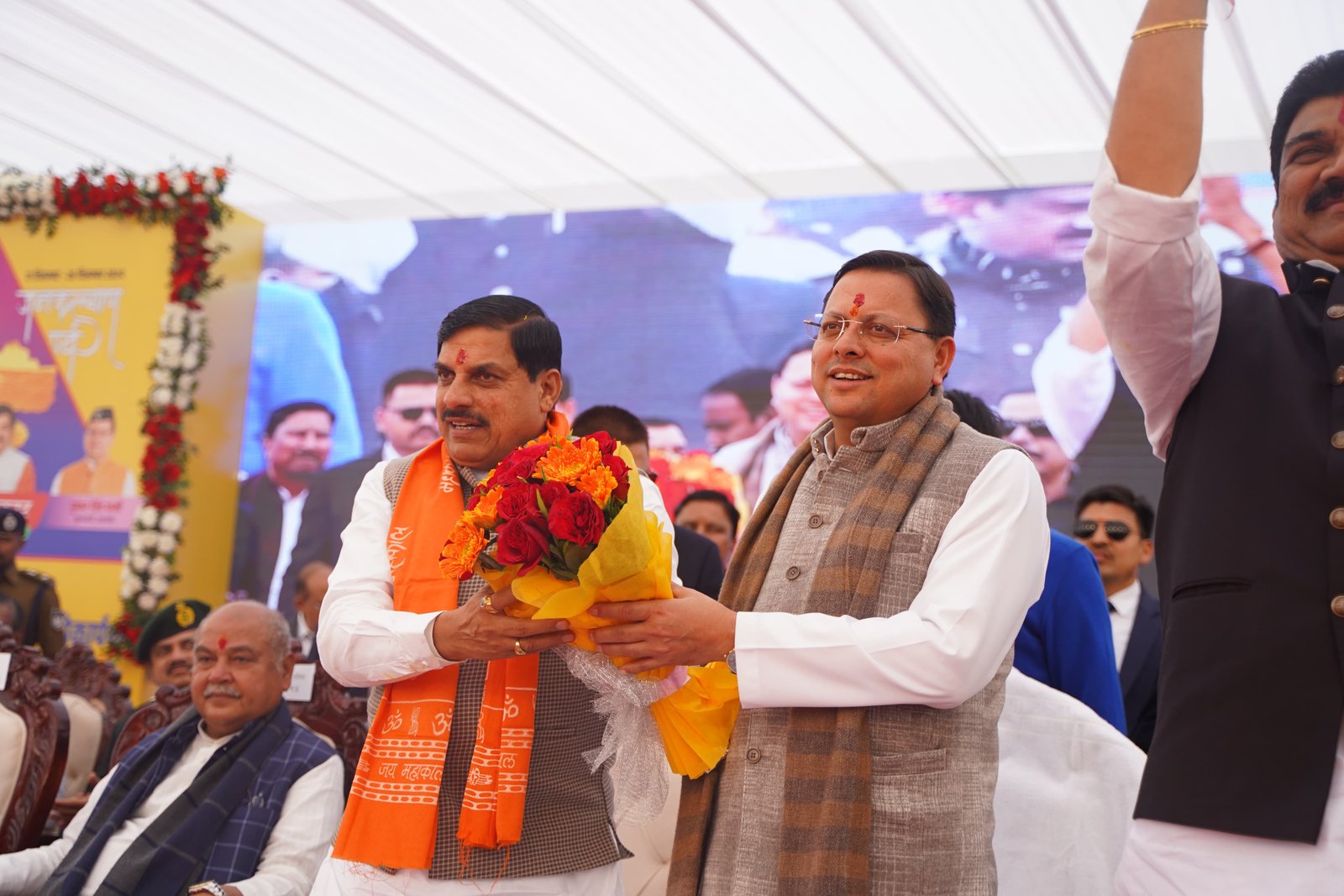 मुख्यमंत्री पुष्कर सिंह धामी ने मध्य प्रदेश के मुख्यमंत्री डॉ. मोहन यादव  के साथ संजय ड्राइव सागर मध्य प्रदेश में आयोजित लाखा बंजारा लेक रिजुवनेशन एण्ड लेक फ्रन्ट डेवलेपमेंट प्रोजेक्ट लोकार्पण कार्यक्रम में किया प्रतिभाग
