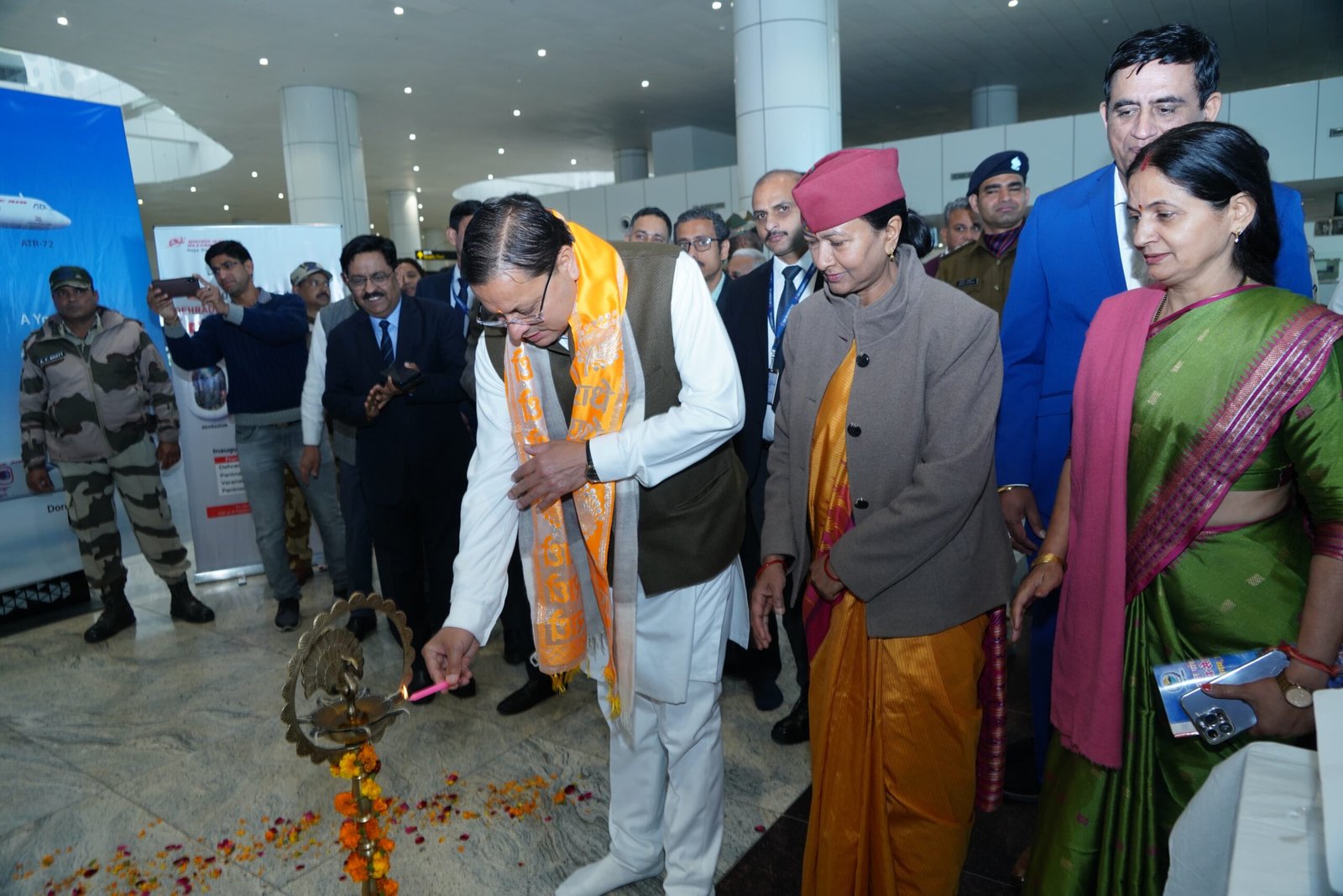 देहरादून : मुख्यमंत्री पुष्कर सिंह धामी ने बुधवार को जौलीग्रांट एयर पोर्ट से देहरादून-अयोध्या, देहरादून-अमृतसर, देहरादून-पंतनगर-वाराणसी के लिये एयर कनेक्टिविटी के अंतर्गत दीप प्रज्जवलित कर, केक काटकर तथा फ्लैग ऑफ़ कर एलाइंस एयर की उड़ानों का शुभारम्भ किया। मुख्यमंत्री ने इस मौक़े पर आयोजित कार्यक्रम को सम्बोधित करते हुए कहा कि हमारा यह प्रयास है कि सम्पूर्ण उत्तराखंड के अंदर लोगों का आवा-गमन सुविधाजनक, सरल व आसान हो, इसके लिये हम निरंतर प्रयासरत हैं तथा देश के लोग उत्तराखण्ड के विभिन्न स्थानों में आसानी से आ जा सकें, जिसके लिये हम लगातार कार्य कर रहे हैं।