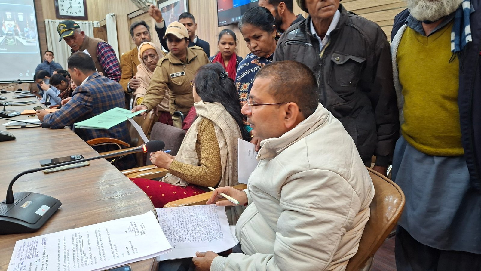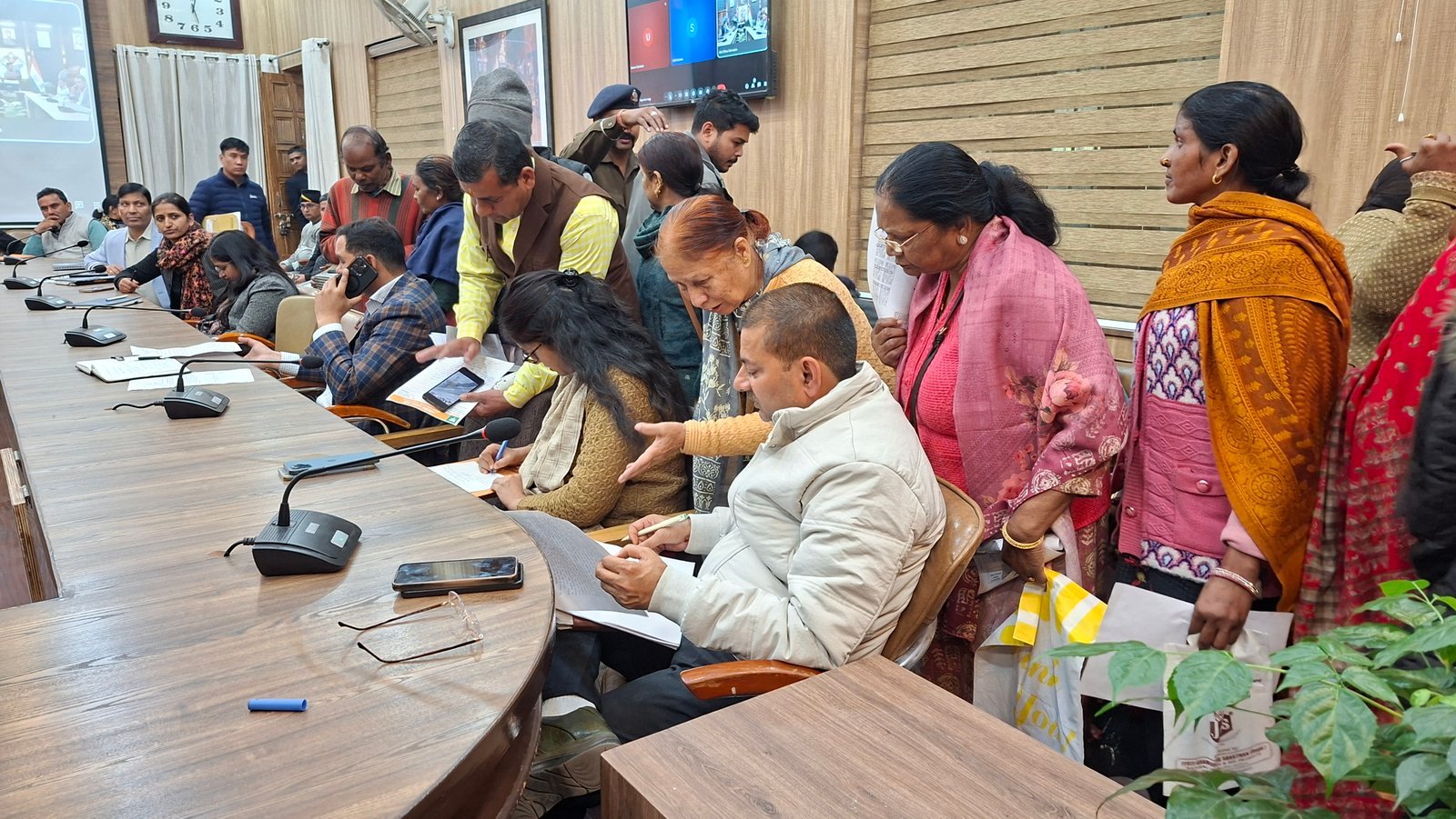 फूलेत-क्यारा मोटर मार्ग पर डामरीकरण की मांग को लेकर पीएमजीएसवाई के अधिशासी अभियंता को त्वरित कार्यवाही करने को कहा गया। मधुर विहार में सीवर लाइन न होने की शिकायत पर पेयजल निगम को निरीक्षण करने को कहा गया। चन्द्रबनी वार्ड के अंतर्गत कैलाशपुर मुख्य मार्ग पर शिव मंदिर के पास क्षतिग्रस्त नालियों के निर्माण हेतु लोनिवि को निर्देशित किया गया। नौगांव में पानी की लाइन क्षतिग्रस्त होेने की समस्या पर जल निगम को लाइन ठीक कराने के निर्देश दिए गए। भू माफियाओं द्वारा सिडकुल की भूमि पर अवैध कब्जा जमा कर कर वृक्षों का पातन किए जाने की शिकायत पर डीएफओ कालसी को त्वरित कार्यवाही करने के निर्देश दिए गए। इस दौरान फरियादियों ने भूमि का सीमांकन, रजिस्ट्री, अवैध कब्जा हटाने से जुड़ी तमाम शिकायतें रखी।