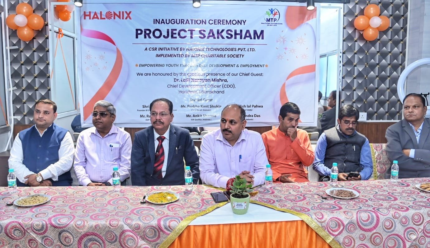 हरिद्वार : हॅलोनिक्स टेक्नोलॉजीज़ प्रा. लि. के कॉर्पोरेट सोशल रिस्पॉन्सिबिलिटी (CSR) के अंतर्गत संचालित “प्रोजेक्ट सक्षम” का ट्रेनिंग सेंटर का आज मुख्य विकास अधिकारी डॉ. ललित नारायण मिश्रा ने रिबन काटकर उद्घाटन किया। मुख्य विकास अधिकारी ने कहा कि ट्रेनिंग सेंटर के खुलने से जनपद हरिद्वार में ही नहीं आस पास के राज्यों में भी रोजगार के नये अवसर बनेंगे, जिससे युवक युवतियां आत्मनिर्भर बन सकेंगे और बेहतर भविष्य की ओर अग्रसर हों सकेंगे।कार्यक्रम के दौरान सभी अतिथियों ने इस सामाजिक पहल की सराहना करते हुए कहा कि यह परियोजना हरिद्वार के युवाओं को कौशल विकास और रोजगार के माध्यम से सशक्त बनाने की दिशा में एक सराहनीय कदम है।
