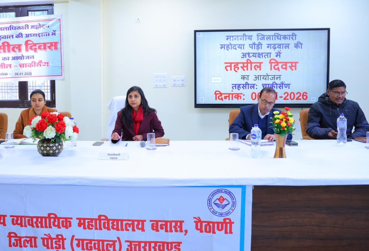 पौड़ी : मुख्यमंत्री के निर्देशन पर जनसमस्याओं के त्वरित निस्तारण हेतु मंगलवार को चाकीसैंण तहसील दिवस का आयोजन राजकीय व्यावसायिक महाविद्यालय बनास, पैठाणी में किया गया। तहसील दिवस की अध्यक्षता जिलाधिकारी स्वाति एस. भदौरिया ने की। इस दौरान उन्होंने विभागीय स्टॉलों का निरीक्षण कर पात्र व्यक्तियों को योजनाओं का लाभ प्रदान करने के निर्देश दिए तथा स्थानीय नागरिकों की समस्याएं गंभीरता से सुनीं। तहसील दिवस में कुल 68 शिकायतें दर्ज हुईं, जिनमें से अधिकांश का मौके पर ही निस्तारण किया गया।