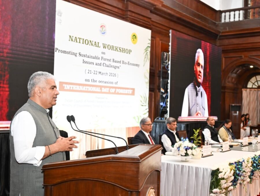 देहरादून : शनिवार को भारतीय वानिकी अनुसंधान एवं शिक्षा परिषद – वन अनुसंधान संस्थान देहरादून में केंद्रीय पर्यावरण, वन एवं जलवायु परिवर्तन मंत्री भूपेंद्र यादव ने अंतर्राष्ट्रीय वन दिवस 2026 के अवसर पर दो दिवसीय राष्ट्रीय कार्यशाला का उद्घाटन किया। इस वर्ष अंतर्राष्ट्रीय वन दिवस “वन और अर्थव्यवस्थाएँ” विषय के तहत मनाया जा रहा है। जो आर्थिक समृद्धि को बढ़ावा देने और आजीविका को सहारा देने में वनों की महत्वपूर्ण भूमिका को उजागर करता है। इस अवसर पर भारतीय वानिकी अनुसंधान एवं शिक्षा परिषद, पर्यावरण, वन और जलवायु परिवर्तन मंत्रालय के सहयोग से, 21-22 मार्च, 2026 को ICFRE, देहरादून में “वन-आधारित सतत जैव-अर्थव्यवस्था को बढ़ावा देना: मुद्दे और चुनौतियाँ” विषय पर दो दिवसीय राष्ट्रीय कार्यशाला का आयोजन कर रहा है।