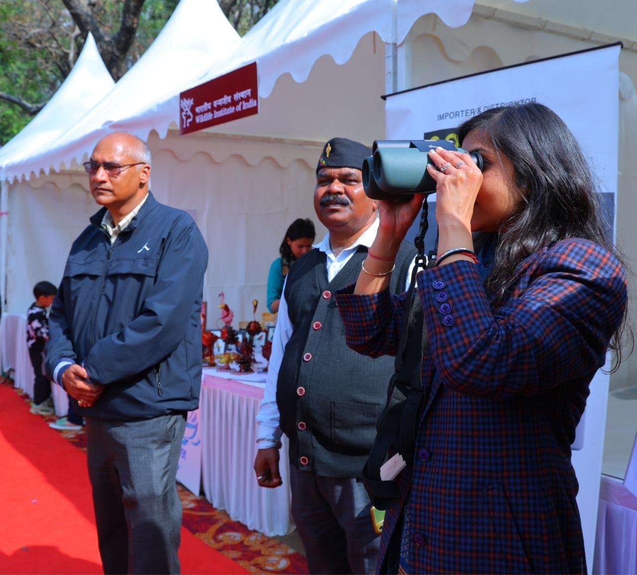 जिलाधिकारी ने कार्यक्रम के अंतर्गत लगाए गए विभिन्न स्टॉलों का अवलोकन एवं निरीक्षण किया। इस दौरान उन्होंने भारतीय वन्यजीव संस्थान, हमारा पिरुल हमारी पहचान, फाइन आर्ट गैलरी सहित अन्य स्टॉलों का अवलोकन किया। निरीक्षण के दौरान जिलाधिकारी ने हस्तशिल्प एवं क्राफ्ट से निर्मित घरेलू उपयोग की वस्तुओं की सराहना करते हुए कहा कि स्थानीय कारीगरों द्वारा तैयार किए गए ये उत्पाद न केवल उपयोगी हैं, बल्कि अपनी कलात्मकता के कारण अत्यंत आकर्षक भी हैं। उन्होंने कहा कि ऐसे प्रयास स्थानीय आजीविका को बढ़ावा देने के साथ-साथ पारंपरिक कला को भी सहेजने का कार्य कर रहे हैं। भारतीय वन्यजीव संस्थान के स्टॉल पर प्रदर्शित विभिन्न पक्षियों की जानकारी लेते हुए जिलाधिकारी ने उनकी प्रशंसा की। वहीं, पेंटिंग के माध्यम से उकेरे गए पक्षियों के चित्रों को भी उन्होंने सराहा। इस अवसर पर जिलाधिकारी ने दूरबीन के माध्यम से पक्षियों का अवलोकन कर प्रकृति और जैव विविधता के संरक्षण के महत्व पर भी प्रकाश डाला।