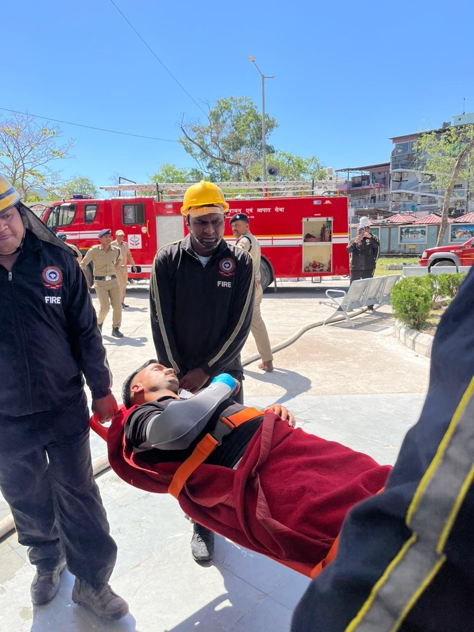 ऋषिकेश ट्रांजिट कैंप में आग की घटना के दौरान पूरे कैंप को सुरक्षित रूप से खाली कराया गया। अभ्यास के तहत पांच यात्रियों को गंभीर रूप से घायल दर्शाया गया, जिन्हें एंबुलेंस के माध्यम से एम्स ऋषिकेश भेजा गया, जबकि 12 अन्य घायलों को प्राथमिक उपचार उपलब्ध कराया गया। अग्निशमन विभाग ने तत्परता से आग पर काबू पाकर स्थिति सामान्य की।