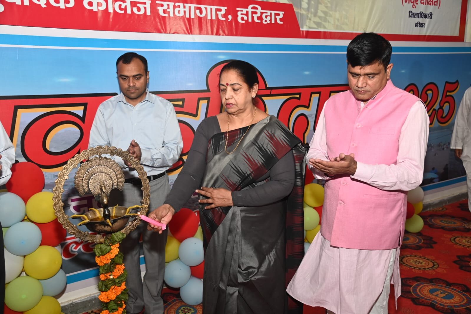 हरिद्वार : उत्तराखंड राज्य के स्थापना रजत जयंती सप्ताह के अंतर्गत आयोजित कार्यक्रमों में आज ऋषिकुल आयुर्वेदिक महाविधालय ऑडोटोरियम में जिला प्रशासन की ओर से जनपद के राज्य आंदोलनकारियों के लिए सम्मान समारोह आयोजित किया गया, जिसमें मुख्य अतिथि राज्य सभा सासंद कल्पना सैनी एवं अन्य जनप्रतिनिधियों द्वारा दीप प्रज्वलित कर कार्यक्रम का शुभारंभ किया।इस अवसर पर राज्य आंदोलनकारियों को पुष्प माला एवं शॉल भेंटकर सम्मानित किया।