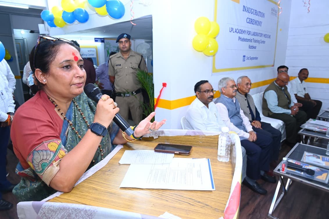 कोटद्वार : उत्तराखंड विधानसभा अध्यक्ष एवं कोटद्वार विधायक ऋतु खण्डूडी भूषण ने पद्मश्री ब्रिगेडियर (डॉ.) अरविंद लाल के साथ कोटद्वार के देवी रोड स्थित ALVL फाउंडेशन (लाल पैथ लैब) द्वारा स्थापित फ्लेबोटोमिस्ट ट्रेनिंग सेंटर का उद्घाटन किया। इस अवसर पर संबोधित करते हुए विधायक खण्डूडी ने कहा कि कोटद्वार और आसपास के क्षेत्रों के युवाओं के लिए यह केंद्र रोजगार और कौशल विकास का एक बड़ा अवसर है। इस प्रशिक्षण केंद्र में युवाओं को पांच महीने की विशेष ट्रेनिंग दी जाएगी, जिसके उपरांत उन्हें भारत सरकार से मान्यता प्राप्त प्रमाणपत्र और प्लेसमेंट की सुविधा भी प्रदान की जाएगी। उन्होंने कहा कि यह पहल न केवल युवाओं को रोजगार से जोड़ने का काम करेगी, बल्कि क्षेत्र में गुणवत्तापूर्ण डायग्नोस्टिक सेवाओं को भी सुदृढ़ बनाएगी।